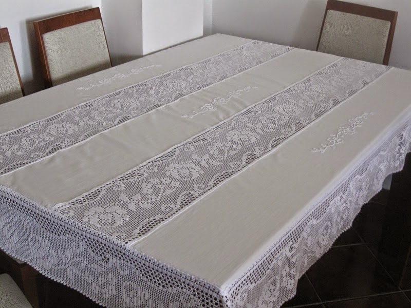 A simple crochet that can be applied to any fabric and make a beautiful tablecloth, this is done in blue, but other colors will also look good.